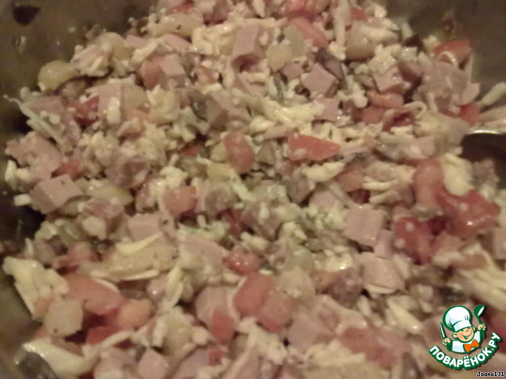 P.S. Можно сыр не замешивать со всей начинкой, а просто на каждую положить поверх начинки. -