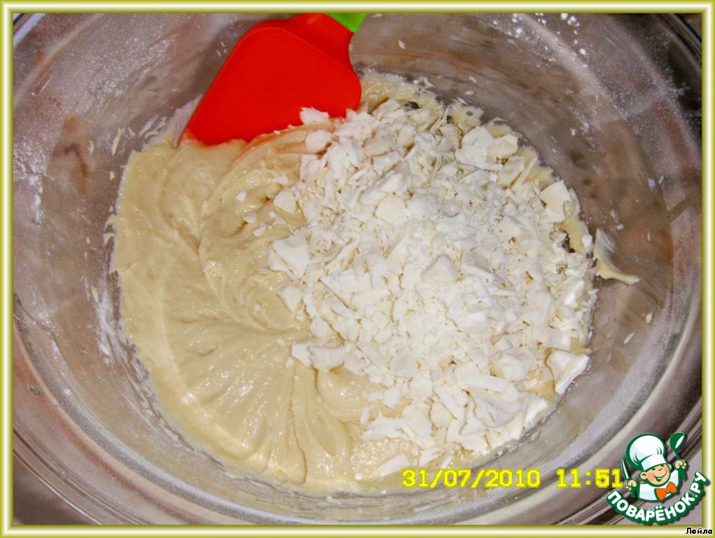 Замесить тесто, в последнюю очередь добавив рубленный шоколад.