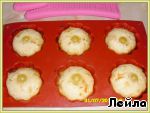 Виноград помыть и отделить от черенков. В каждую формочку для маффинов уложить по 3-4 виноградинки, оставив 12 штук. Равномерно распределить тесто по формочкам поверх винограда. Оставшиеся 12 виноградин уложить в центре каждого будущего маффина, слегка вдавив в тесто.
