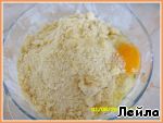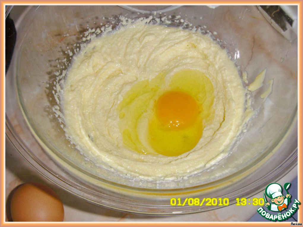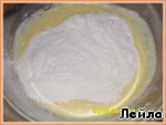Муку просеять с разрыхлителем и добавить во взбитую массу, перемешивая.