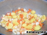 Корнеплоды и лук нарезаем на крупные кусочки. Кладем в форму для запекания, поливаем 2 ст. л. растительного масла, посыпаем половиной пряной смеси, солим и перчим. Перемешиваем.