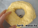 Если Вы хотите, чтобы Ваше "кольцо" было ровным, то можно положить в его центр любую круглую посуду, которая подходит для духовки (ее предварительно смазать маслом с наружной стороны).