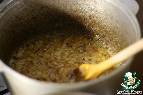 • Полчаса томила на среднем огне. Хорошо видно, как меняется цвет. Не давайте подгореть, иначе появится ненужная горечь.