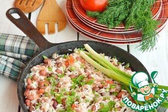 5. Добавить рис. Можно по вкусу добавить мелко порезанный чеснок. Вконце - соевый соус.