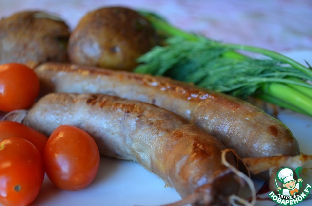 Ну, а дальше, на Ваше усмотрение - жарить, запекать, готовить на гриле. Советов на счет подготовления свежих колбас есть очень много, одни советуют их поколоть иголкой, другие ни в коем случае не колоть, некоторые советуют отварить 5 минут и потом зажарить, еще кто-то - залить кипятком на 5 минут. Так как это мои первые самостоятельные колбасные изделия, ручаться за такие советы не могу, но вот, как поступила я: иголкой колбасу не колола, жарила на масле в тяжелой чугунной сковороде на очень маленьком огне. Получились румяные, сочные изделия. Приятного аппетита!