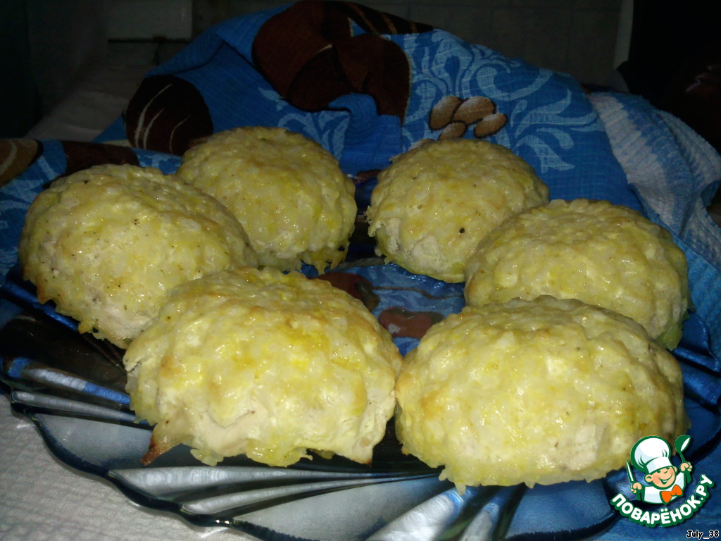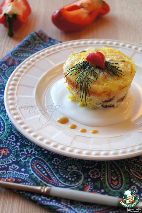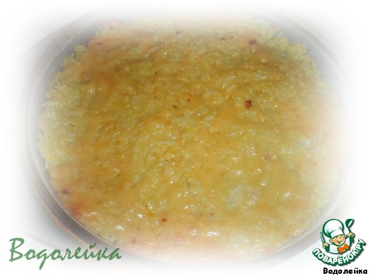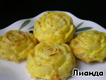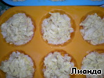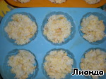 В формочки разложить 2/3 риса с сыром. У меня формочки силиконовые, поэтому я их не смазывала.