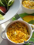 Рис отварить (в стакане воды), остудить. Добавить сыр, куркуму и арахис. Все перемешать.