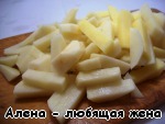Картофель нарезать брусочками и опустить вариться в кипящую подсоленную воду.