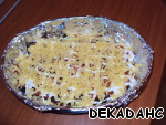 Посыпаем сыром. И выпекаем 30 минут в духовке, которая нагрета до 200 градусов.