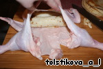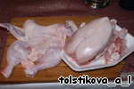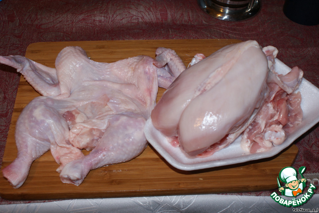 Сразу прошу прощения, пошаговые фото разделки курочки я не фотографировала, т.к.руки постоянно мыть и разделывать не очень удобно. Попытаюсь описать подробнее...