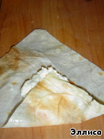 А теперь сворачиваем лаваш конвертиком,