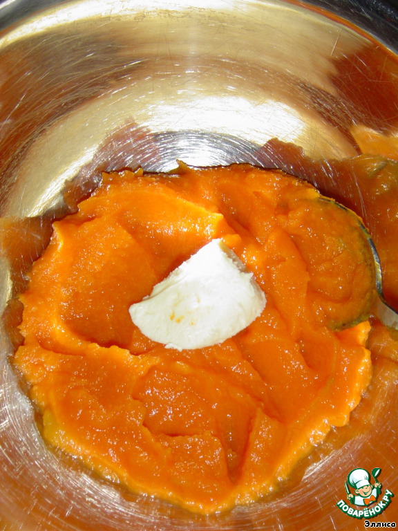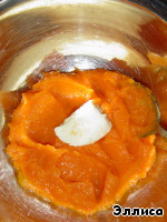 Запеченную тыкву пюрируем в блендере и в горячее пюре кладем сливочное масло, размешиваем.