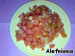Помидоры нарезать кубиками, предварительно удалив семена, если помидор мясистый и не дает много жидкости, то удалять не нужно.