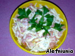 Один из любимых наших салатов, очень прост в приготовлении. Это был мой первый рецепт на сайте, но без фото и редактирования. Приношу извинения за качество фото - снимала мобильным.