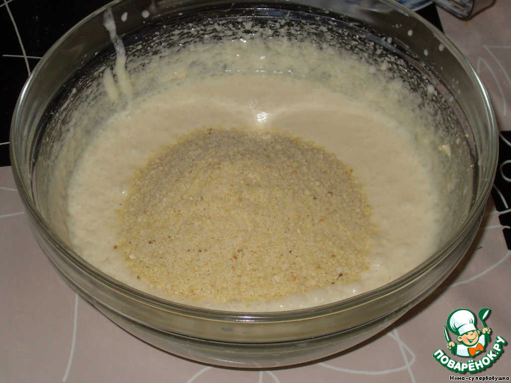 Миндаль залить кипятком на 1 минуту, затем обдать холодной водой и сразу же очистить от шелухи. Подсушить в духовке до светло-желтого цвета, немного остудить и смолоть в блендере в муку. |