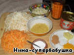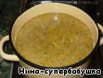Добавить кориандр (или тертый имбирь), куркуму и корицу. Посолить. Варить 10 минут. Всыпать горсть вермишели.