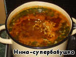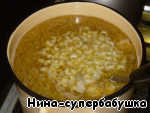 В готовый бульон опустить зажарку и всыпать чечевицу. Варить минут 20.