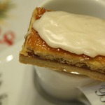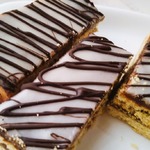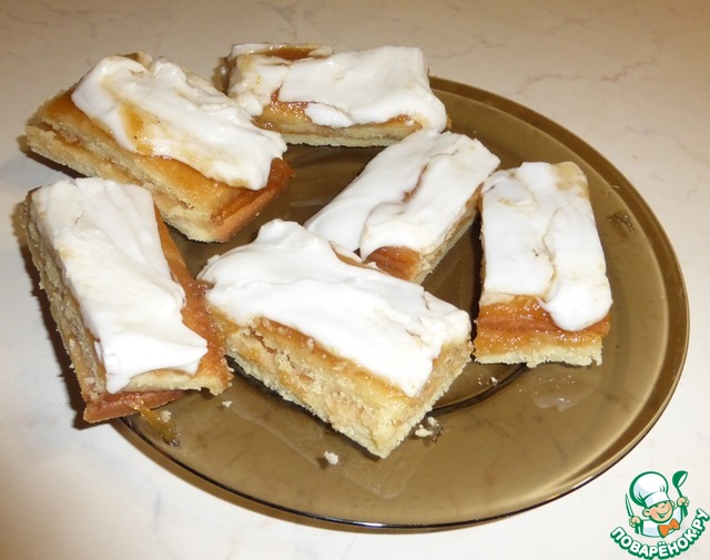 Когда пласт с помадкой совсем остыл, берём нож, нагреваем его в горячей воде (чтобы песочное тесто не крошилось, оно очень рассыпчатое) и режем на пирожные размером 4х9, всё! Наливаем чайку, зовём близких и любимых и угощаемся! ПРИЯТНОГО АППЕТИТА!!!