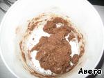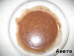 Половину начинки отлить в миску и добавить растопленный горячий шоколад. Я топила его в микроволновке 2.40 мин.