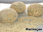 Слепить шар размером с апельсин и слегка приплюснуть сверху. Обвалять в сухарях.