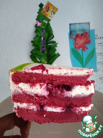 Администрацию и всех поварят нашего сайта поздравляем с Наступающим СТАРЫМ НОВЫМ ГОДОМ!!! И пускай у нас всегда царят дружба, тепло и взаимопонимание! И, конечно же, всем нам здоровья! У нас на сайте есть один похожий рецепт, но тесто немного другое. Очень давно хотелось испечь этот торт, но не было красного красителя. Наконец мы его раздобыли и очень этому рады.