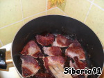 Смотрим наше мясо. Если осталось немного воды - то можно её слить. Добавляем немного масла и жарим еще минут 5 с обеих сторон до поджаристой корочки.