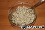 Курицу, чеснок, грибы и лук пропустить через мясорубку.