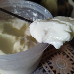 Как видите, он упал плотным сгустком на тряпочку. Дала постоять 3 часа и отсадилось почти 50 гр сыворотки. Я и не предполагала, что в моем густом, однородном йогурте столько жидкости! Это было для меня неожиданностью. Вот что получилось на выходе.