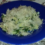 Легкий, нежный и питательный салат – так охарактеризовал рецепт сам автор. Я согласна с этой характеристикой. Рецепт этого блюда был размещeн на сайте в 2008 году пользователем lesi под аналогичным названием и иллюстрирован мной в рамках акции "Раскраски".