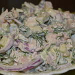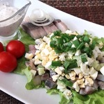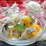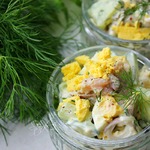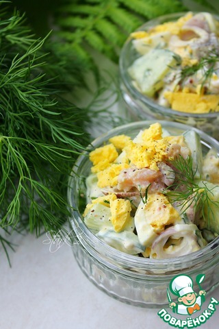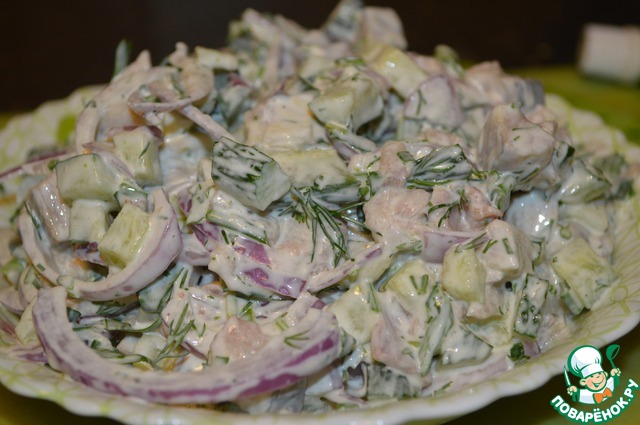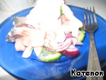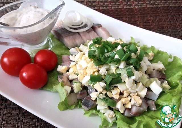 Легкий, хрустящий салатик с сельдью и свежим огурцом, с пикантной заливкой