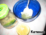 Сметану смешать с лимонным соком, сушеной зеленью и горчицей, добавить соль, перец.