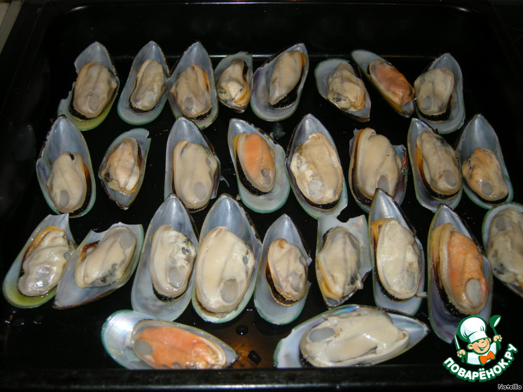 Обязательно следует все мидии помыть, отделить от ракушек мясо мидий и положить назад в раковины.