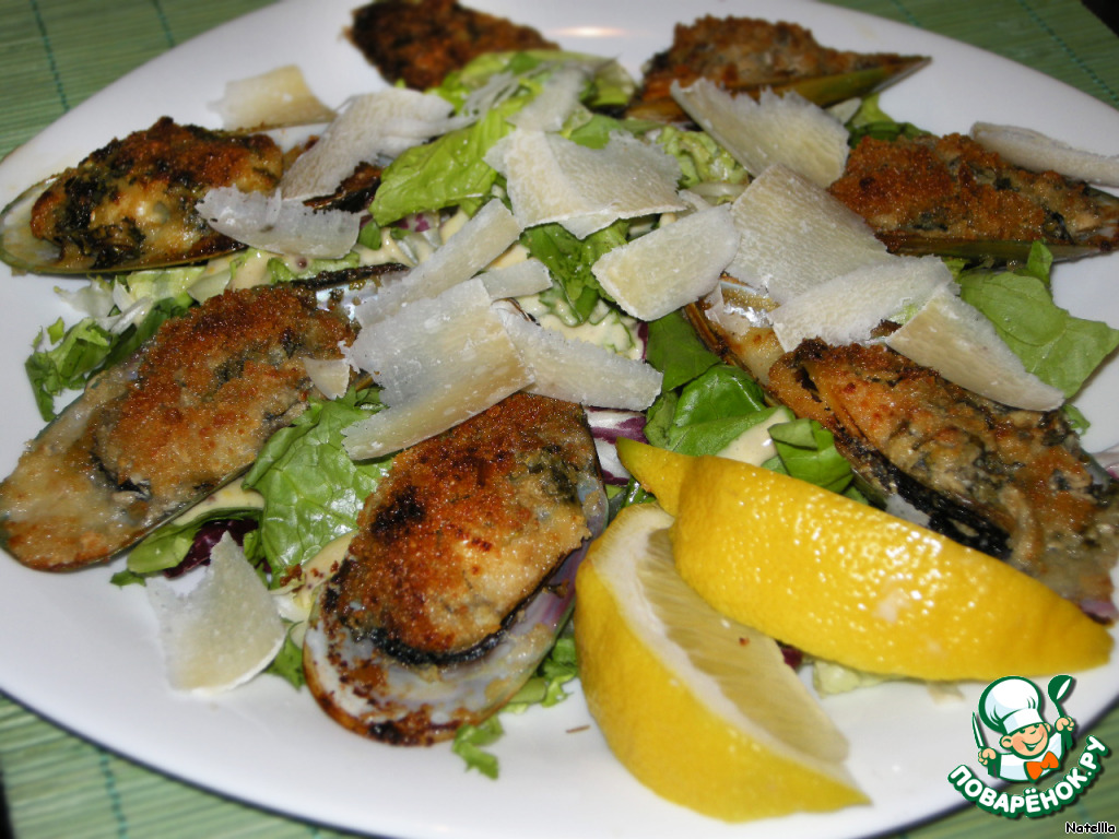 Рецепт «Теплый салат с мидиями и соусом из анчоусов»: