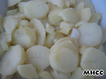 Небольшой противень смазать маслом (растительным или сливочным) и выложить слой картофеля. -