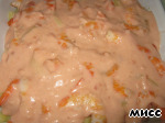 Соус выложить равномерным слоем на креветки. Поставить в разогретую до 220 градусов духовку на 5-10 минут.