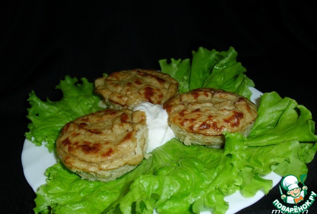 Формочки для выпечки смазываем сливочным маслом и посыпаем панировочными сухарями. Выкладываем приготовленную массу. Сверху посыпаем мятой и панировочными сухарями. Отправляем в разогретую до 200 градусов духовку на 20 минут.