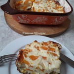И еще. Меня прельстило в рецепте то, что в нем нет муки. Получается воздушная запеканочка, очень диетическая!
