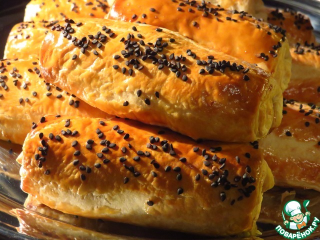 Еще один плюс,слоеное тесто быстрее раскатать,чем замешивать дрожжевое тесто!