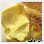 Смешаем белый и коричневый сахар. Вы можете брать их в любых пропорциях, но чем больше коричневого, тем более темным получится Ваше печенье и более карамелизированным на вкус. Добавим размягченное масло и взобьем до растворения сахара.