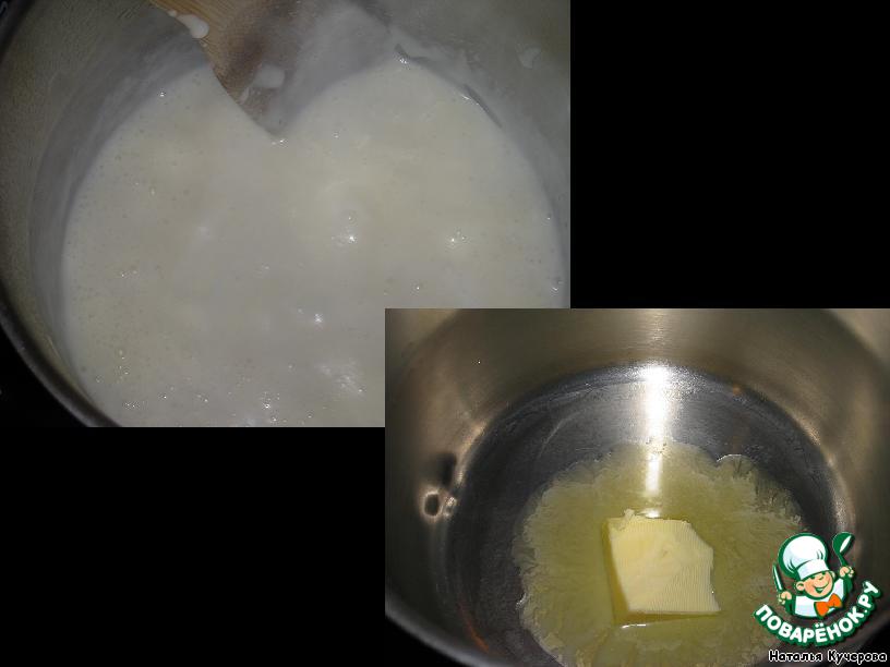 Приготовить соус "Бешамель": в кастрюльке растопить сливочное масло, добавить муку. Обжарить до золотистого цвета. Затем потихоньку добавлять молоко и постоянно мешать, чтобы не образовались комочки. Но не расстраивайтесь, если все-таки комочки появились. Берем блендер и разбиваем все комочки. Получился соус. Довести его до густоты на медленном огне, постоянно помешивая. Соус нам нужен довольно густой. Посолить, поперчить и добавить щепотку мускатного ореха.