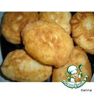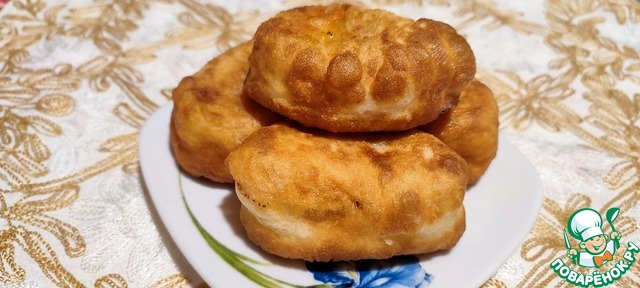 Сформировать из теста шарики, обвалять их в муке. Приплюснув шарик, выложить в него начинку, залепить и сразу же выкладывать в сковородку с раскалeнным маслом швом вниз. Обжаривать с двух сторон на среднем огне до золотистой корочки. Готовые пирожки выкладывать на салфетку или в дуршлаг, чтобы стекло лишнее масло.