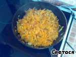 Лук порезать кубиками, морковь натереть на тёрке и обжарить на растительном масле до готовности.
