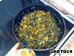 К готовым луку и моркови добавить капусту, перемешать и тушить 2-3 минуты.