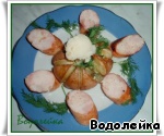 Украшаем по Вашему вкусу. Я украсила зеленью и кусочками домашней колбаски.