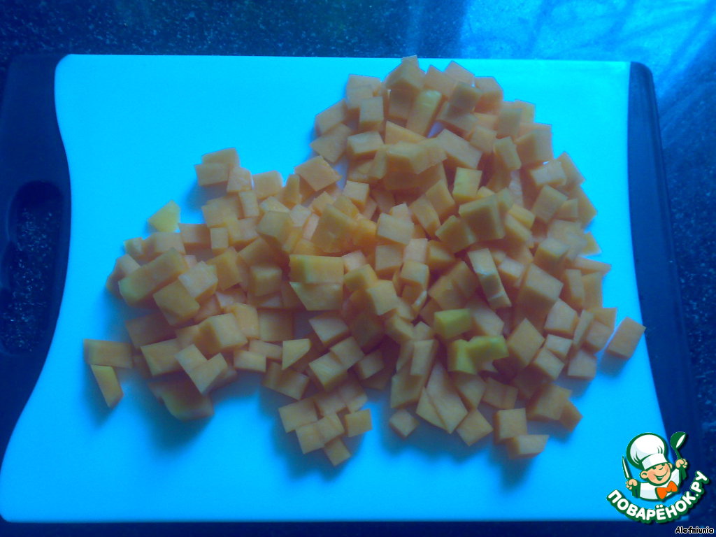 Тыкву нарезать небольшими кубиками.