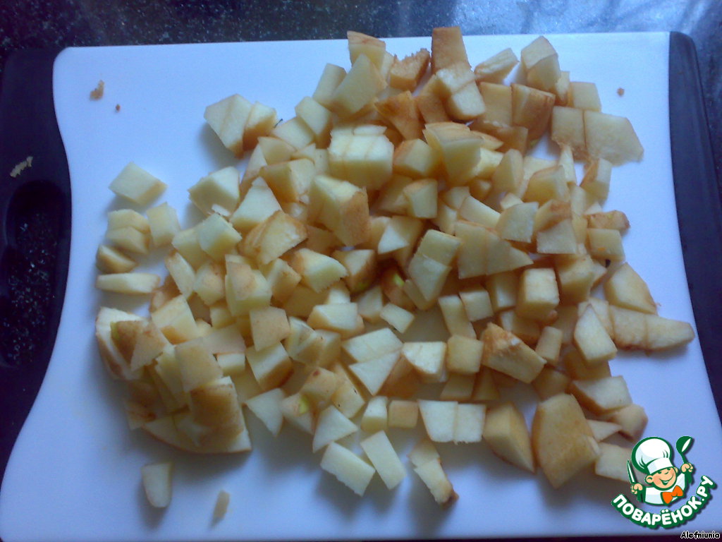 Айву нарезать тоже небольшими кубиками.