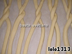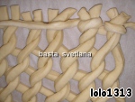 На словах отмечу: жгуты в первом ряду разделяются на пары и переплетаются между собой, во втором ряду первый жгут остаётся как есть, и переплетаются следующие пары, третий ряд - как и первый и т.д. -