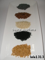 Нанести рисунок по желанию, используя кунжутные семечки, сезам, мак, льняное семя.