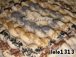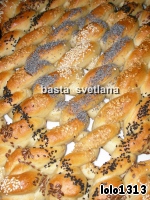 Отправила я мужа с сыном к детскому врачу на очередной приeм. И после приeма (у нас всe хорошо) оказались мои мужчины в магазине с коврами. Уж как их туда занесло, я не знаю, но по возвращении только и было разговоров о ковре, который им очень понравился. Они так дружно рассказывали какой он красивый , большой, толстый, сколько в нeм узлов и сколько разных цветов, что мне пришлось согласиться поехать на следующий день смотреть чудо-ковeр. И конечно, пришлось согласиться с покупкой, хотя надо было решать совсем другие вопросы. И мало того, я на следующий день испекла хлебный ковeр... вот, такая история рецепта получилась.
