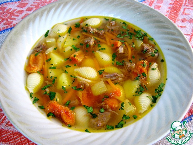 А я Ваш супчик забрала в коллекцию. Макароны, пожалуй, уберу, но курага - это хорошо!